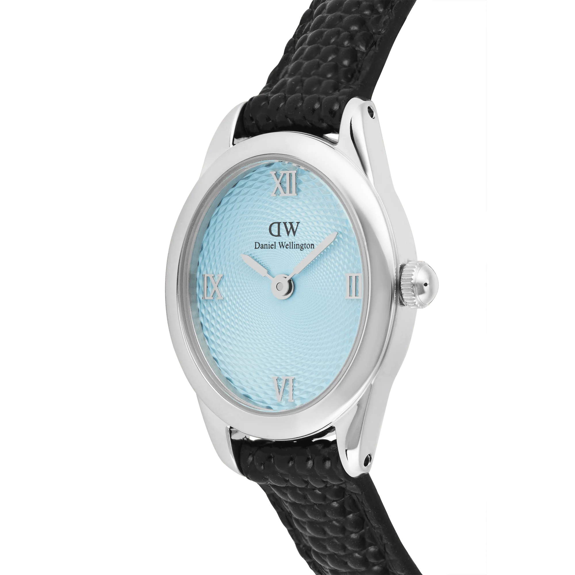 Ophelia Mini Black Lizard Unitone Guilloché Silver brings a refined oval silhouette to a compact timepiece. The Silver-tone 316L stainless steel case measures 22 x 25.5 mm with a slim 6.1 mm profile. Its unitone Silver dial features a custom guilloché spiral that catches the light with quiet brilliance, framed by classic Roman numerals and our printed logotype. If you are drawn to Silver oval watches, this is a graceful, everyday interpretation.The strap introduces our new lizard-textured leather concept. Embossed chrome-free cow leather creates a fine, pebble-like surface that adds depth and a tactile feel. Finished in black, it tapers from 13 to 11 mm with a 2.8 mm thickness and secures with a polished pin buckle. Designed for those who appreciate subtle detail and a feminine profile, it sits comfortably on the wrist. Among oval watches for women, this piece balances elegance and ease.Thoughtful gifts speak through design. The Ophelia Mini makes a meaningful present for birthdays, Valentines, Christmas, graduations, and Mother’s Day. Its black strap and Silver dial pair seamlessly with everyday looks and occasion wear, making it a versatile choice they will reach for often.We craft each element with care. Durable 316L stainless steel provides a refined canvas for the Silver finish, while Japanese quartz movement ensures reliable timekeeping. The guilloché dial is precisely debossed to achieve its crisp, reflective spiral, and the chrome-free leather strap is cut and finished for long-lasting comfort. The result is a timeless piece shaped by attention to detail.